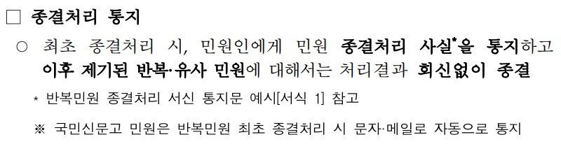 공무원 반복민원 종결처리 통지문 예시 / 출처 : 행정안전부 2022 「민원인의 위법행위 및 반복민원 대응지침」 끝.