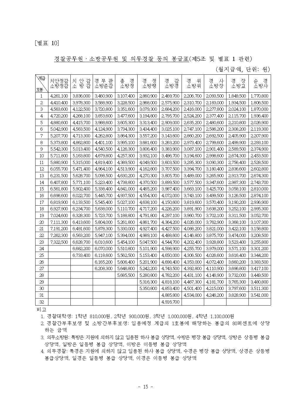 ▲순경·소방사 1호봉 177만원(일반공채), ▲경위·소방위 1호봉 220만원(간부후보생 공채, 경찰대학)