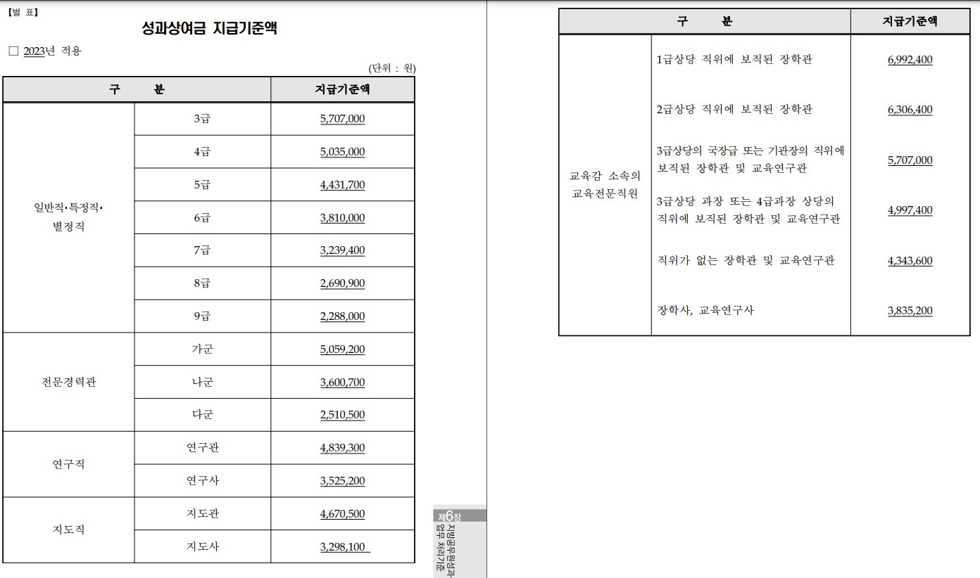 그래서 이번 정보글은 공무원 성과상여금(성과급)에 대해 정리했습니다. 자료출처는 지방공무원보수규정과 행정안전부 2023년 지방공무원보수업무등처리지침입니다!