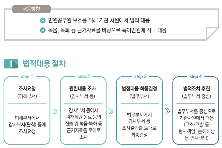 특이(악성)민원 법적대응 방향 / 출처: 행정안전부 공직자 민원응대 매뉴얼 개정판(2022)
