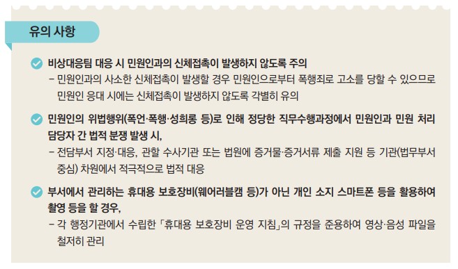 ※ 민원인의 위법행위는 다른 민원인들에게 불안감을 주고 민원처리를 지연시키는 등 국민불편을 초래하므로 공익적 차원에서 엄정 대응